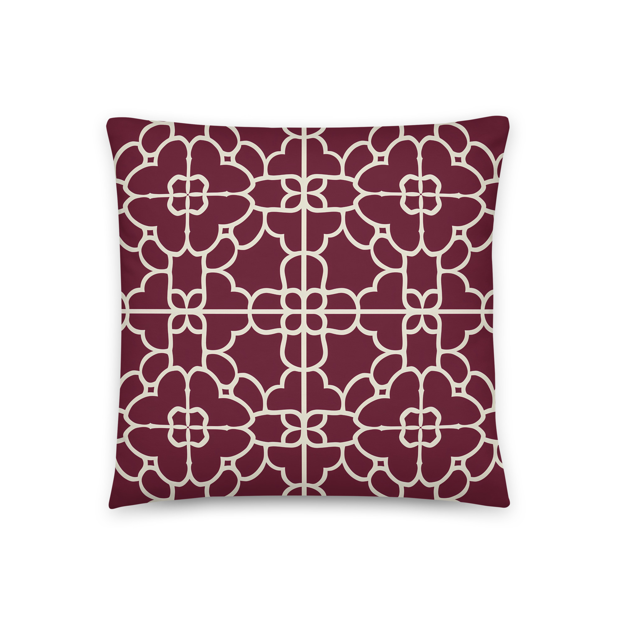Add timeless elegance to your home with the Crimson Majesty Accent Pillow. This 18×18 pillow features an intricate burgundy and cream geometric pattern, combining bold sophistication with classic style. Perfect for living rooms, dining spaces, or entryway seating, it creates a statement look that’s both refined and versatile.