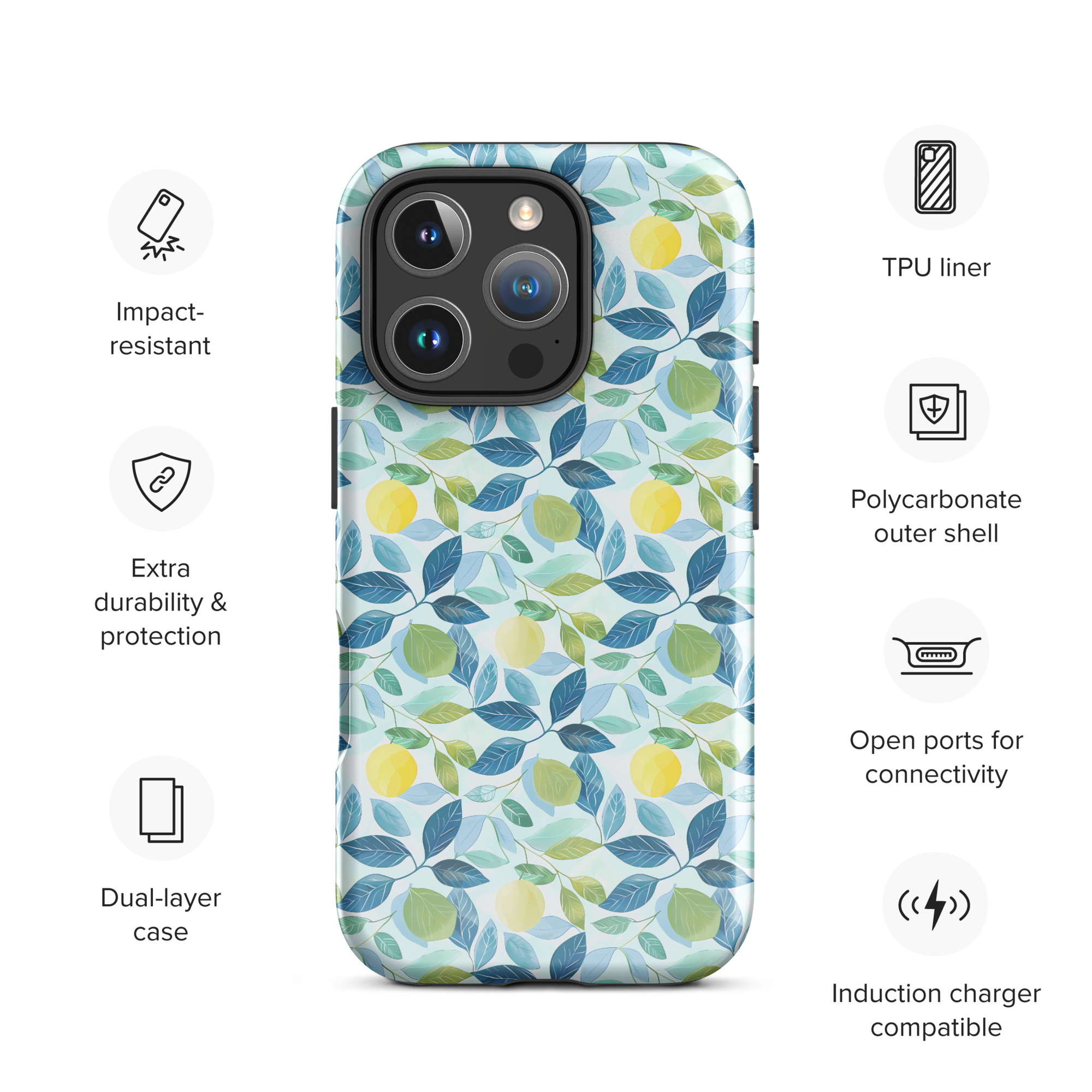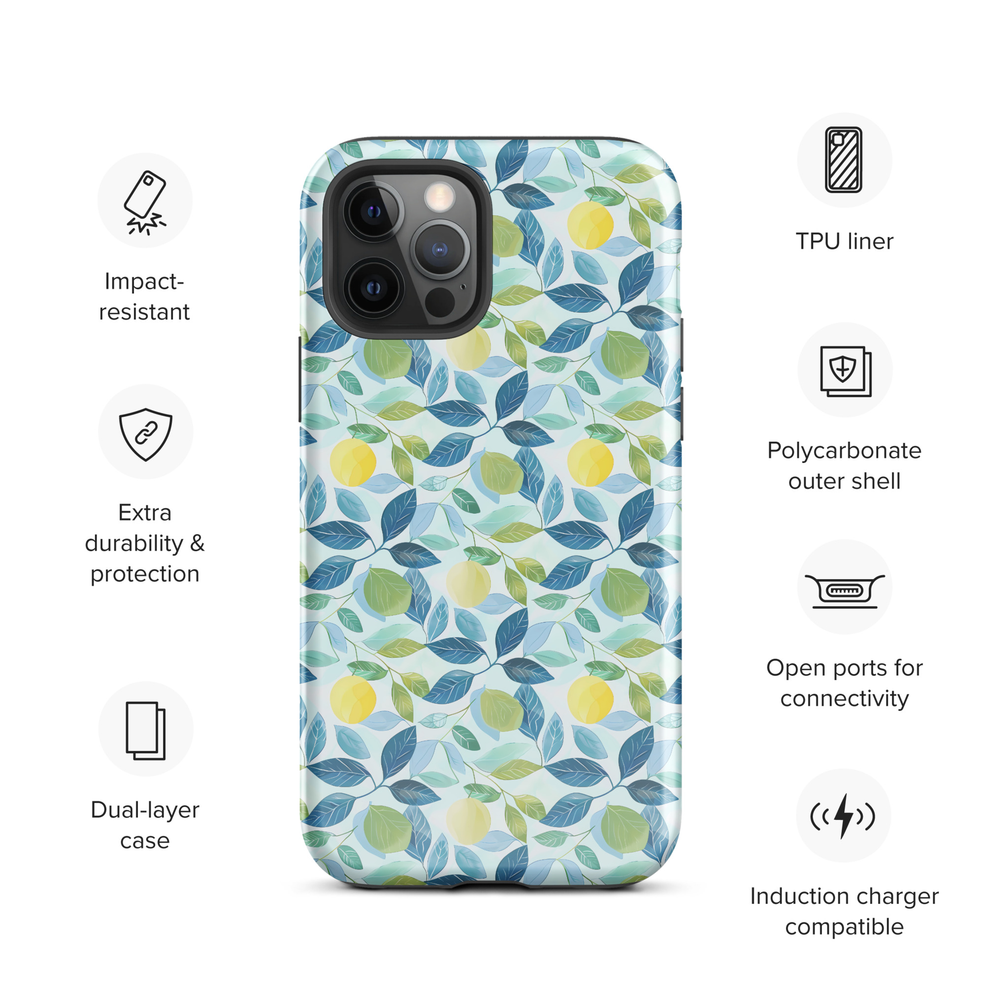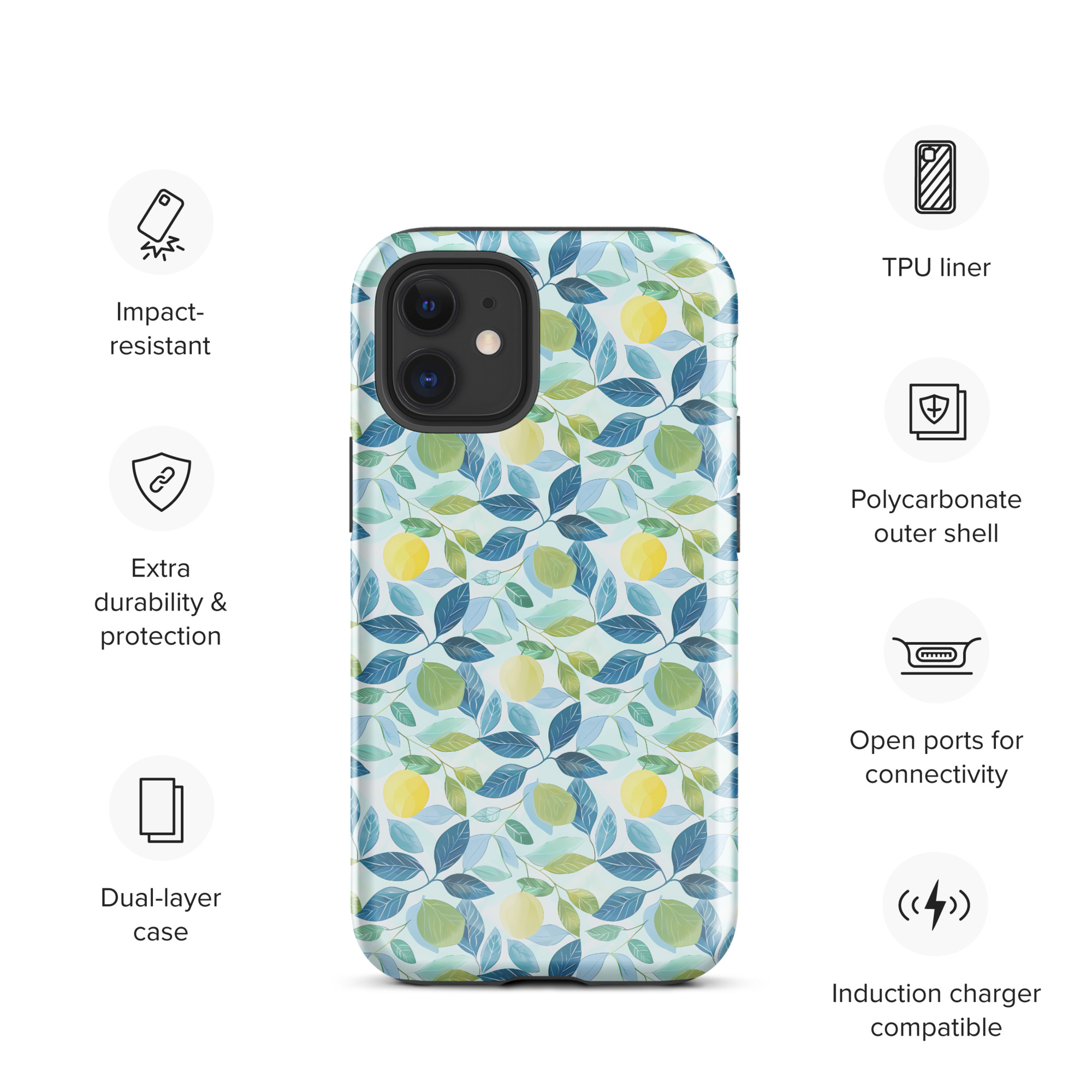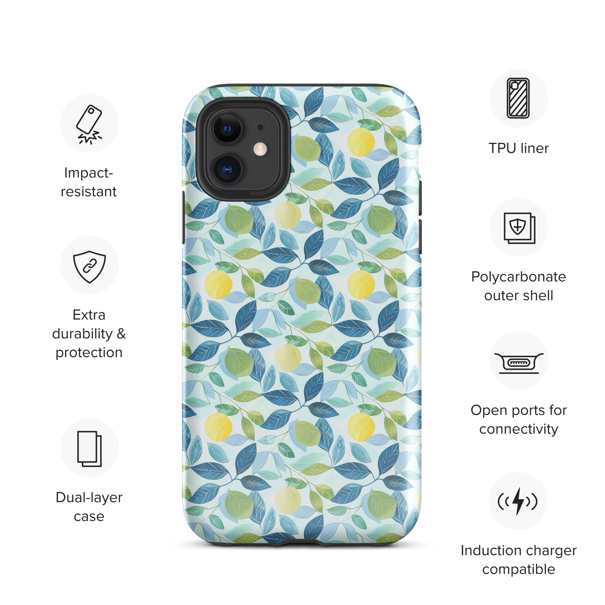 The Lemon Grove Bliss iPhone® Case blends orchard-inspired beauty with reliable protection. Its fresh citrus pattern adds a cheerful touch, while the dual-layer build keeps your phone safe. Designed for slim comfort and everyday style, it’s the perfect mix of elegance and function.