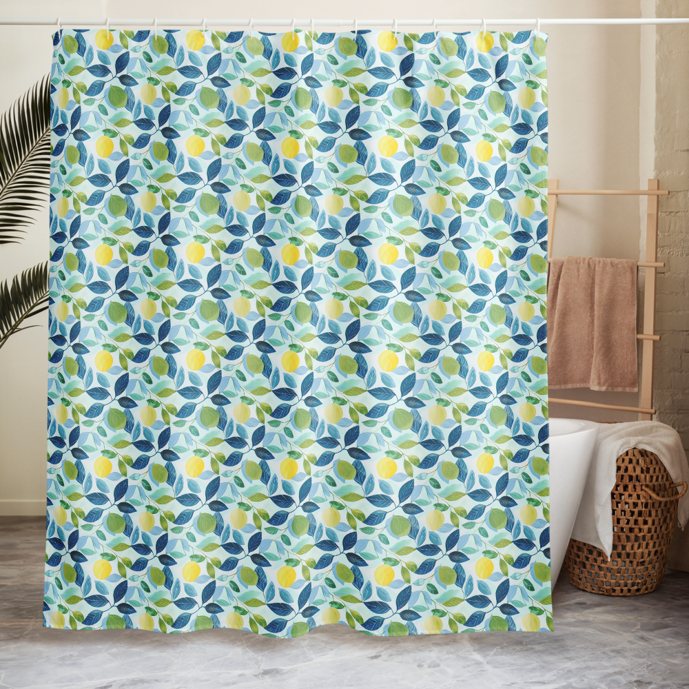 Bright and cheerful Lemon Grove Bliss shower curtain – water-resistant, durable, and easy to care for.