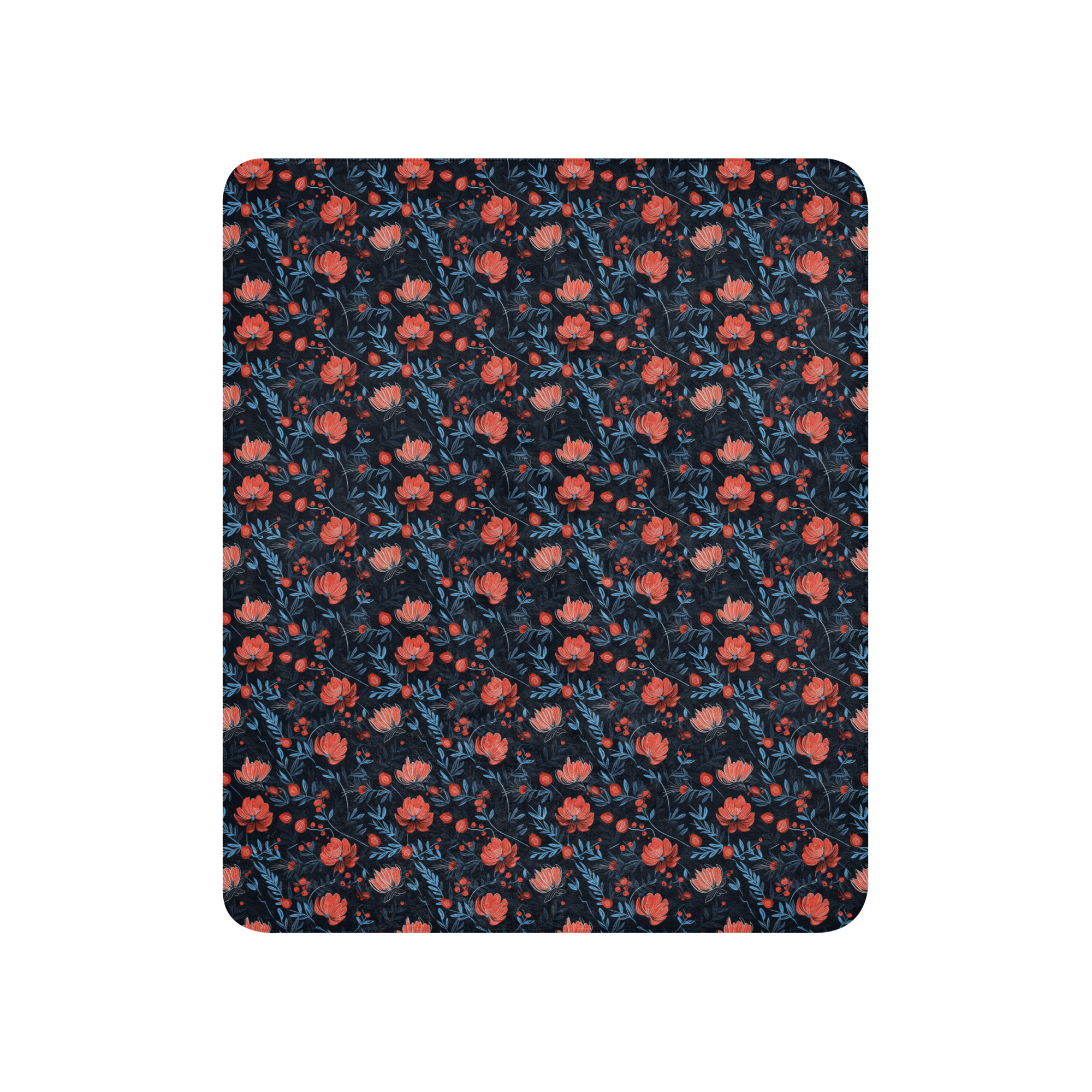 The Midnight Berry Blooms Sherpa Throw Blanket adds depth and elegance to your space with lush floral elements set against a rich, dark background. The smooth fleece front showcases the berry-toned florals with crisp detail, while the plush sherpa backing provides warmth and softness for everyday use. Designed to feel dramatic yet inviting, this cozy fleece throw layers beautifully over sofas, accent chairs, or beds. It’s a statement piece that brings warmth and sophistication into modern living spaces.