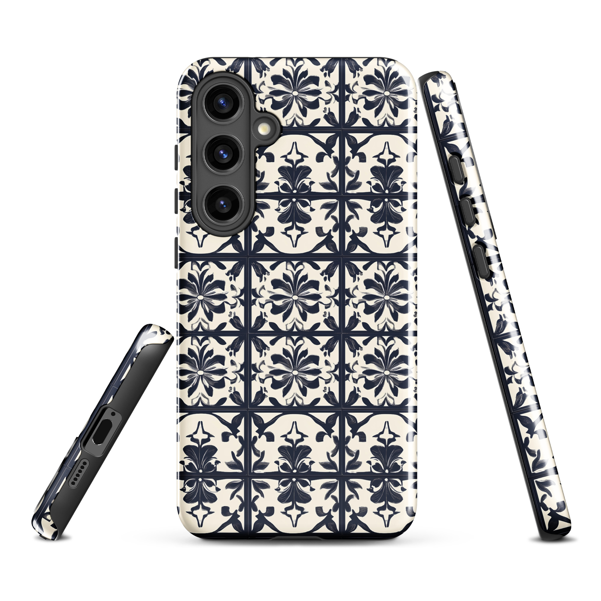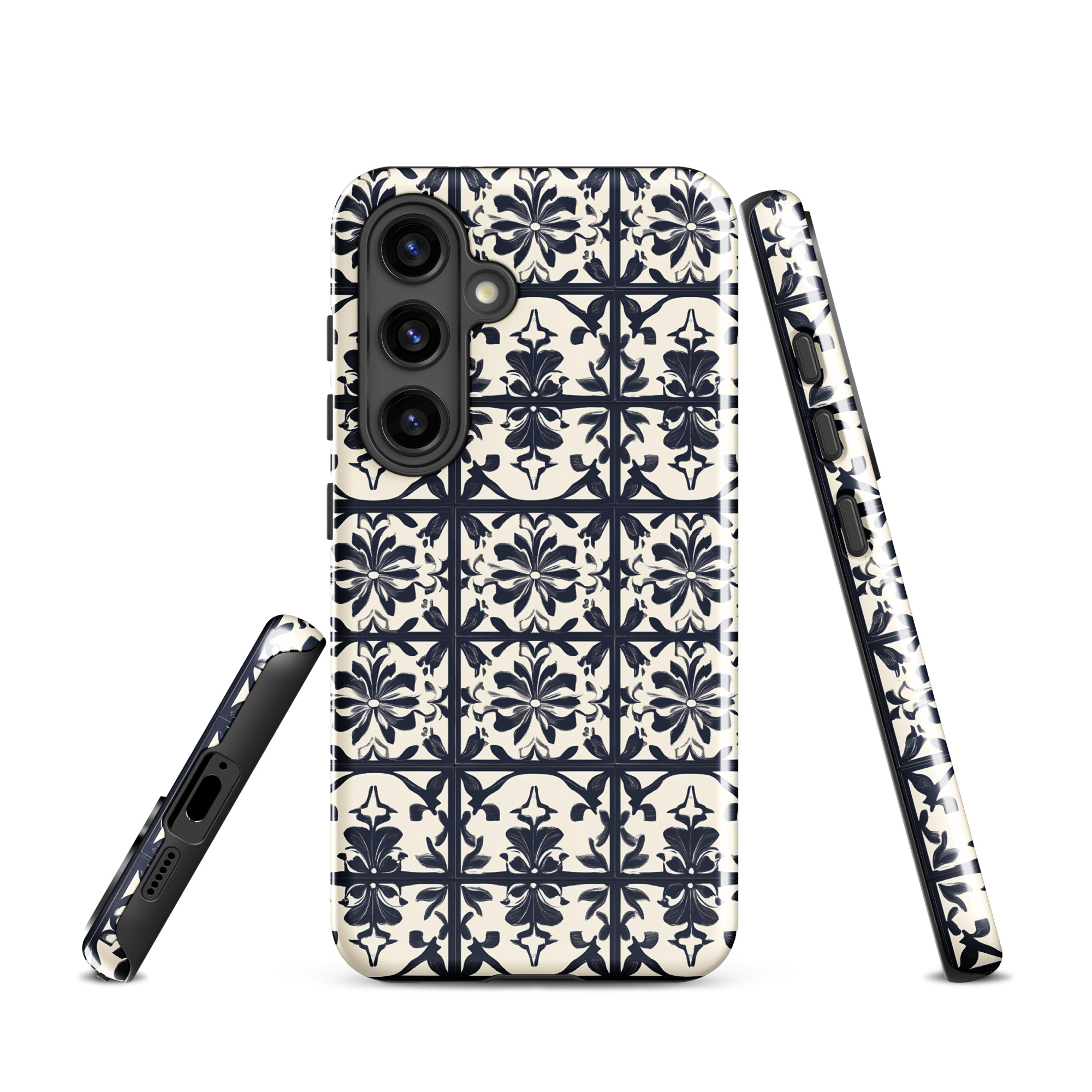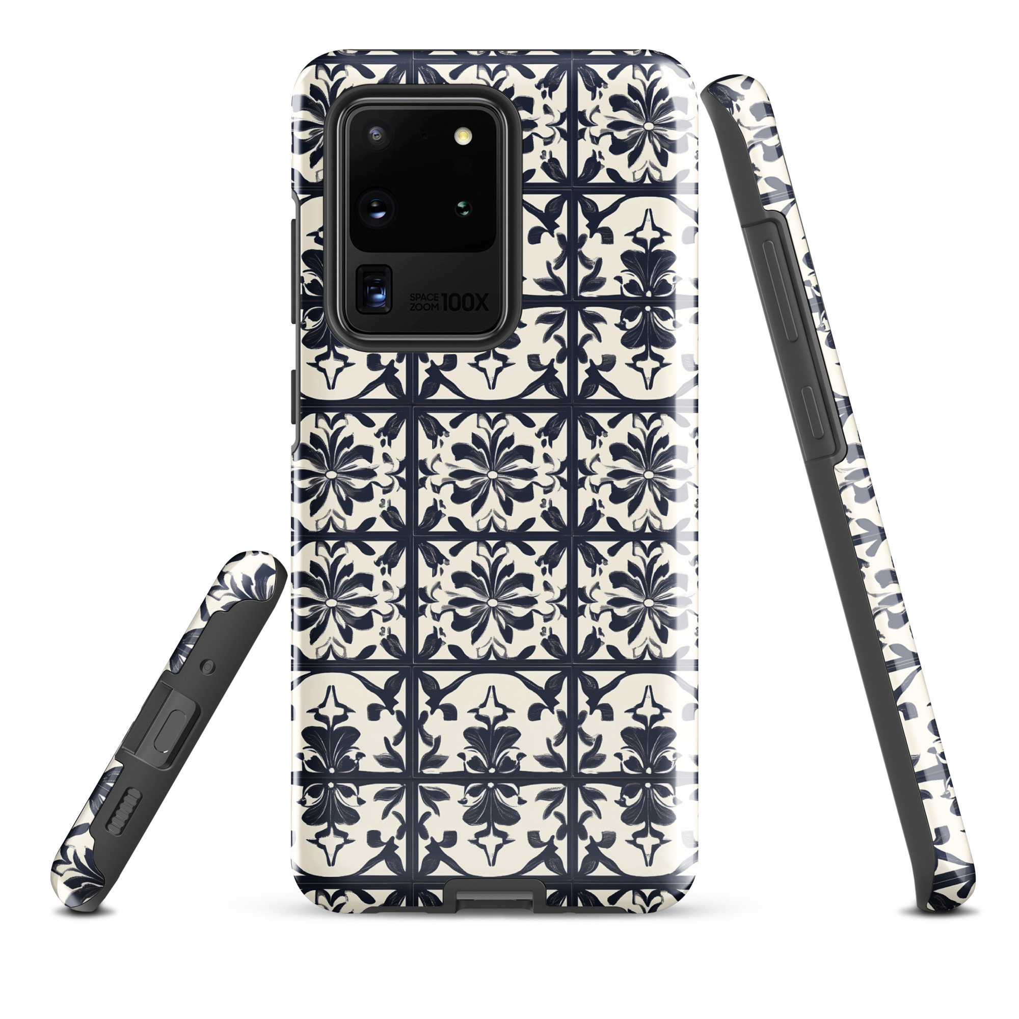 The Midnight Bloom Tiles Samsung® Case blends floral elegance with geometric sophistication, creating a look that’s bold, refined, and timeless.