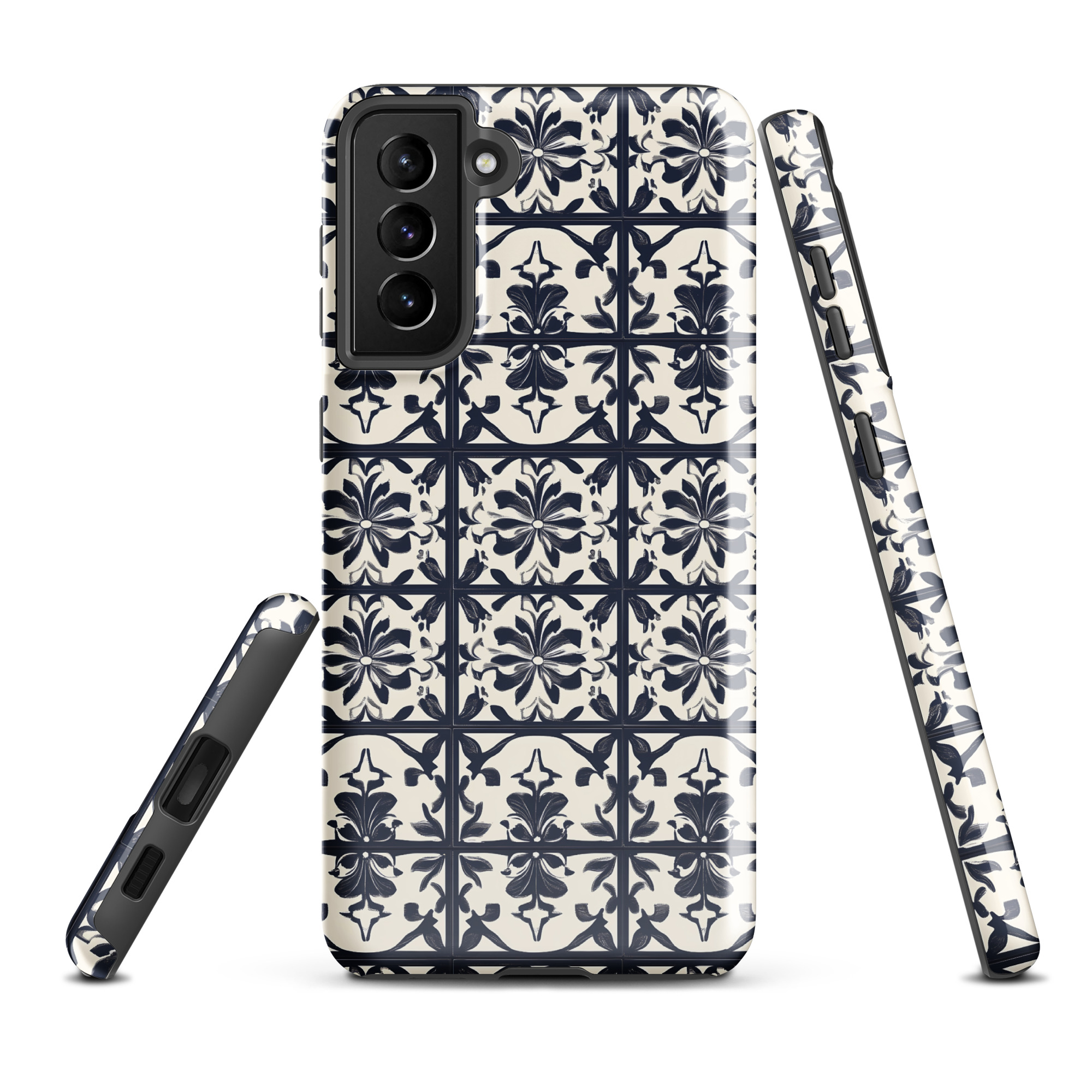 • samsung-galaxy-s21. Samsung phone case with chic bloom tile design.