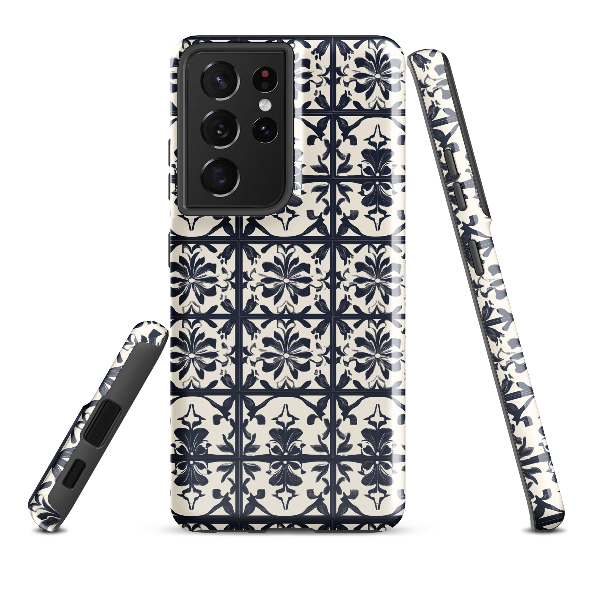• samsung-galaxy-s21-ultra. Samsung phone case with chic bloom tiles pattern.