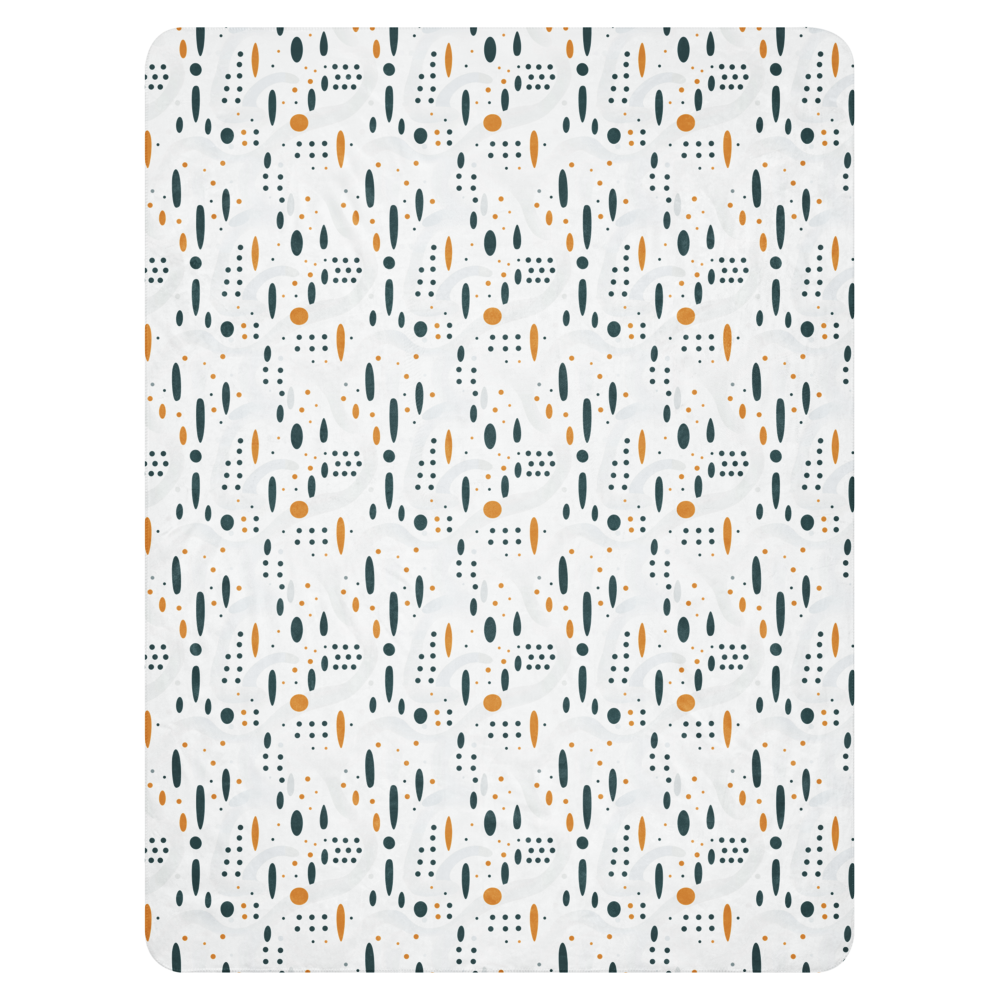 Modern sherpa throw blanket featuring rhythmic dot patterns in a clean, contemporary style. Smooth fleece front with plush sherpa backing for cozy comfort.