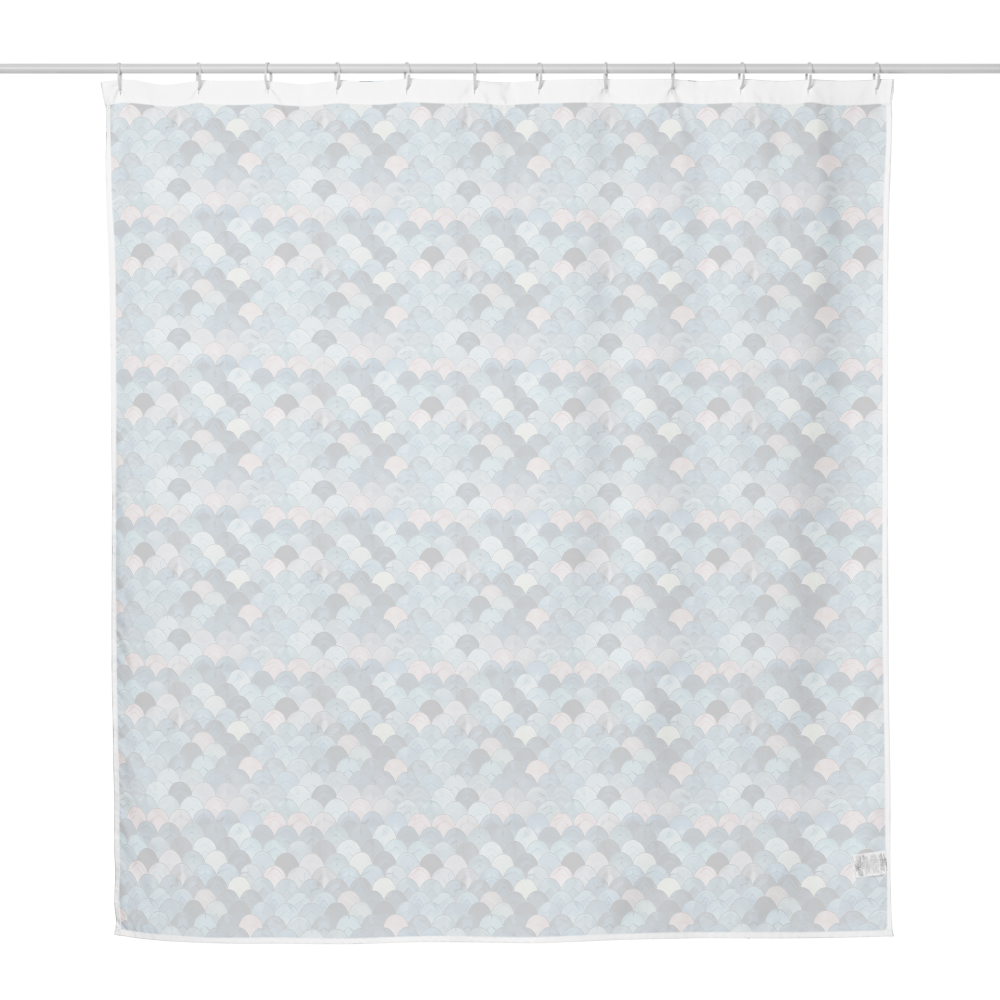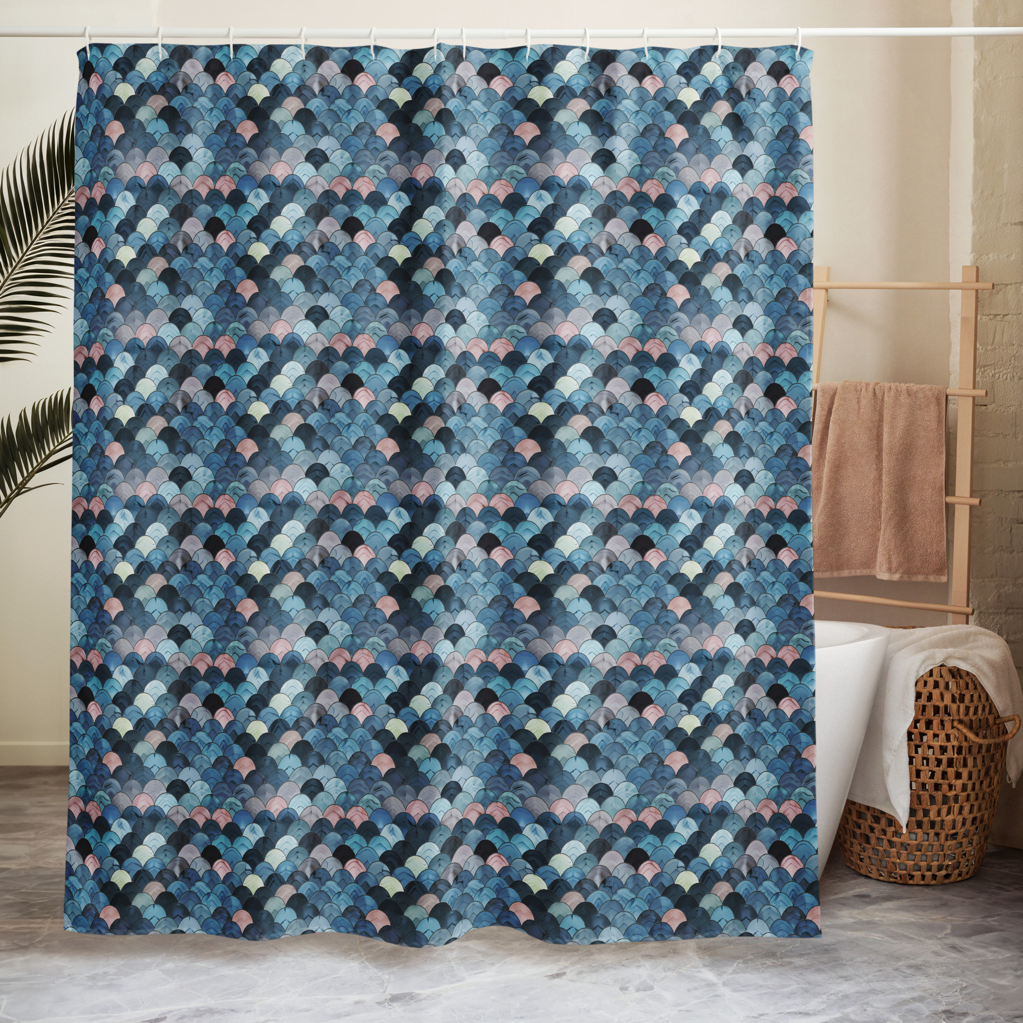 Coastal Oceanic Scales shower curtain in layered blue tones – water-resistant, durable, and easy to care for.