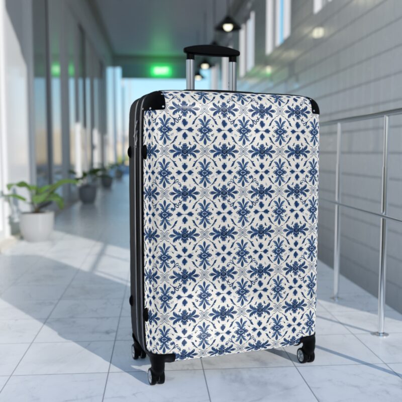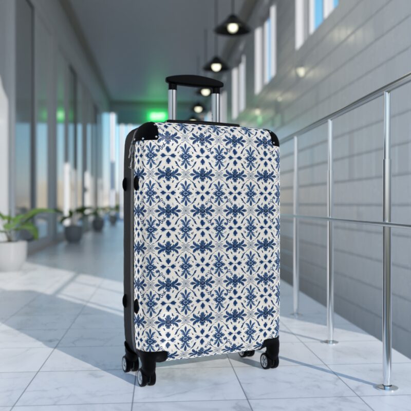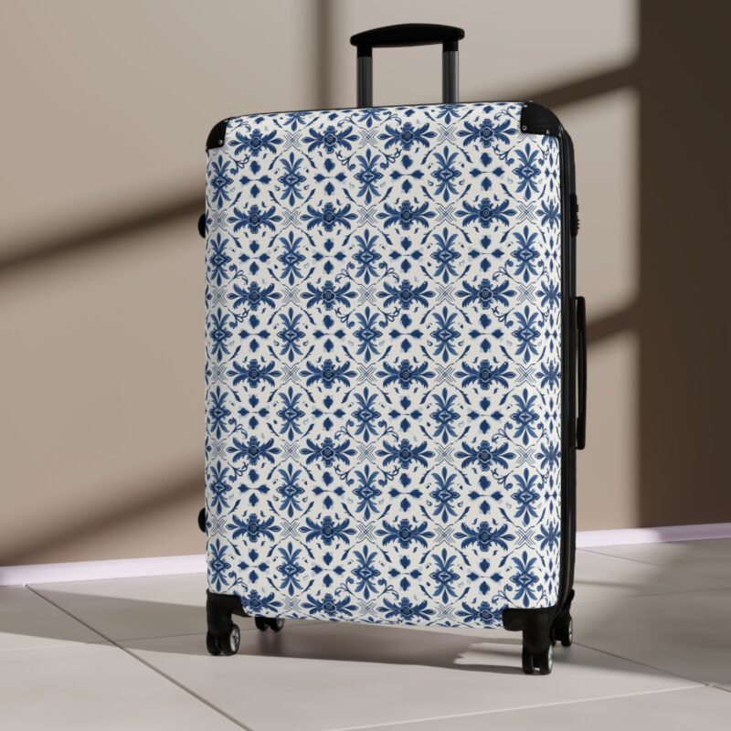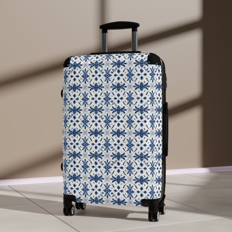 The Portuguese Azulejo Elegance Suitcase features traditional tile-inspired artistry in refined blue and white. Durable, distinctive, and timeless, it brings heritage style to every journey. Please note: This product ships from an international production partner and may take longer to arrive.